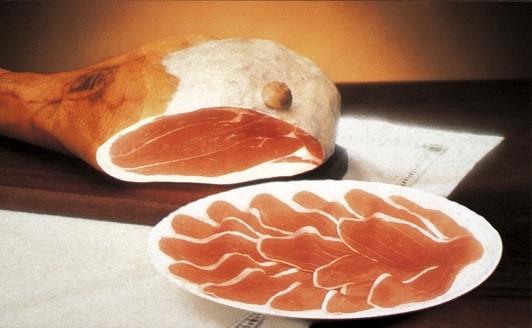 | Nota | Il processo produttivo è descritto nel Disciplinare di produzione e prevede una precisa metodologia. Il maiale, dal quale si ricava la coscia fresca da impiegare nella preparazione del prosciutto di Modena, deve provenire unicamente da 10 regione del Centro Nord Italia, avere almeno 9 mesi di età, pesare in media circa 160 Kg ed essere sano, di razza bianca, alimentato nel trimestre precedente la macellazione con sostanze tali da limitare l’apporto di grassi ad una percentuale inferiore al 10%, riposato e a digiuno. Dopo la macellazione si procede al sezionamento della coscia, quindi al suo inoltro presso lo stabilimento di produzione dove viene subito sottoposta ai necessari controlli. (2) La denominazione di origine “Prosciutto di Modena” è giuridicamente protetta dalla Legge n.11 del 12 gennaio 1990. (3) |